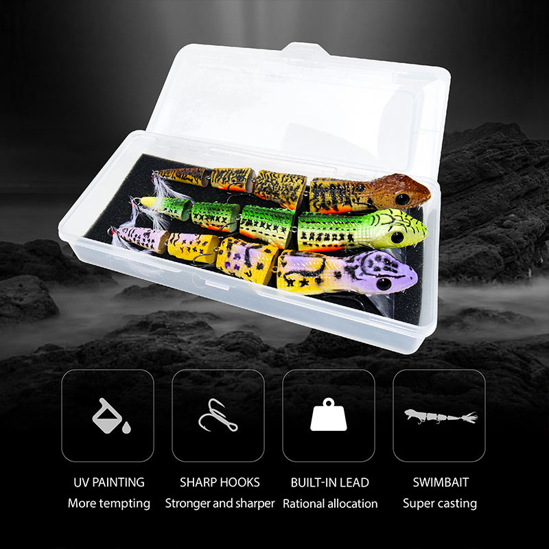 Nouveau leurre flottant de pêche au lancer à chaud, 3 pièces/boîte, Simulation de lézard multi-articulé, grand Swimbait, couleurs UV, stock d'appâts