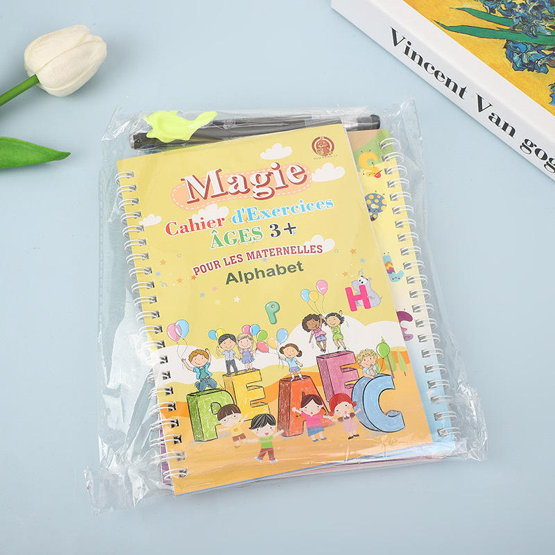 Nouveaux livres magiques français personnalisables grand format pour enfants, livres populaires à rainures pour l'apprentissage de l'écriture manuscrite effaçable