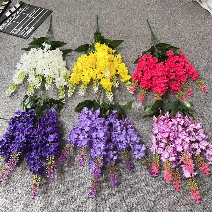 Nouveau Offre Spéciale Fleur Artificielle Conception 7 Branches Artificielle Lavande Fleur De Mariage Fournisseur Maison Décor Fleurs