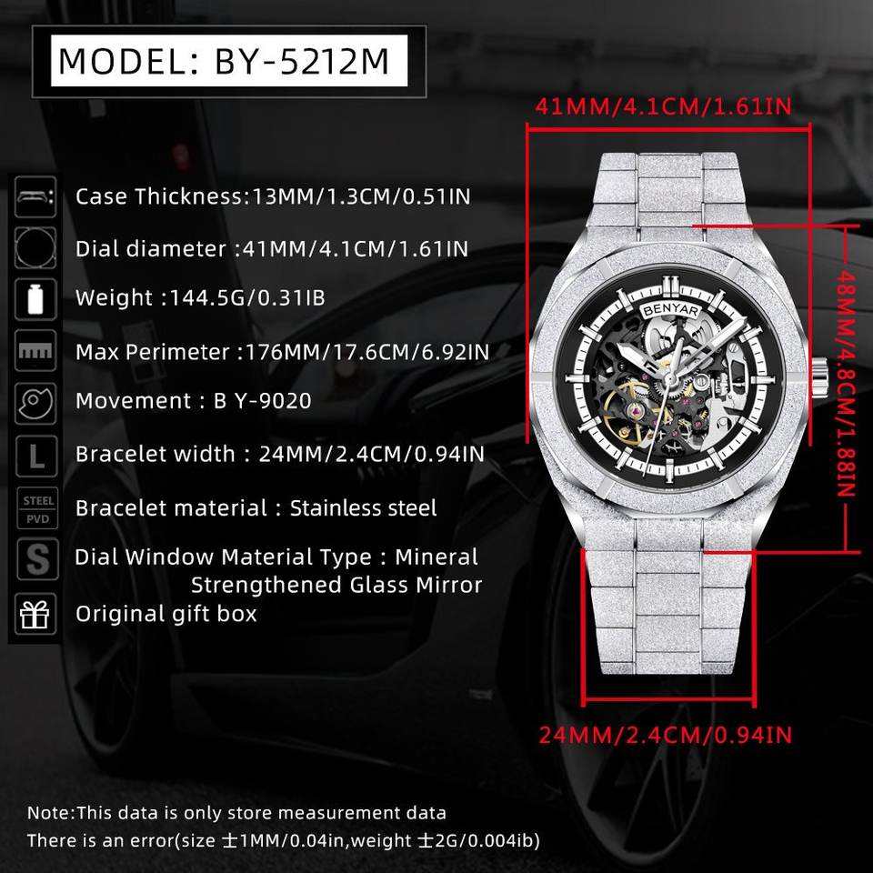 New Hot Sale BENYAR 5121 Luxury Fashion Men's Mechanical Watch 3BAR Water Resistant Stainless Steel Strap Business Chronometer