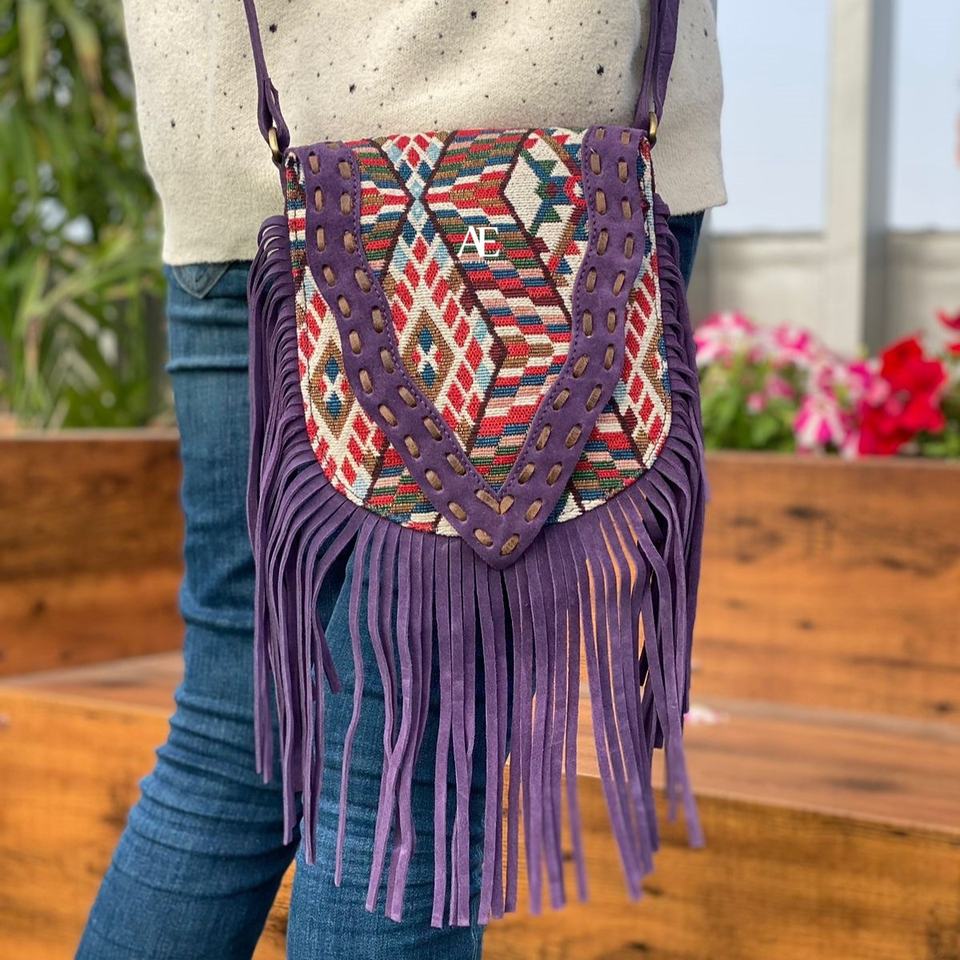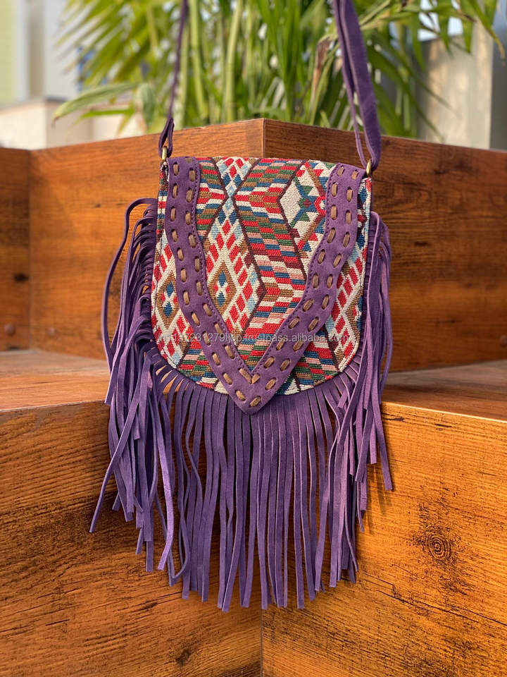 Type:New Jacquard Suede Fringe Leather Sling Bag