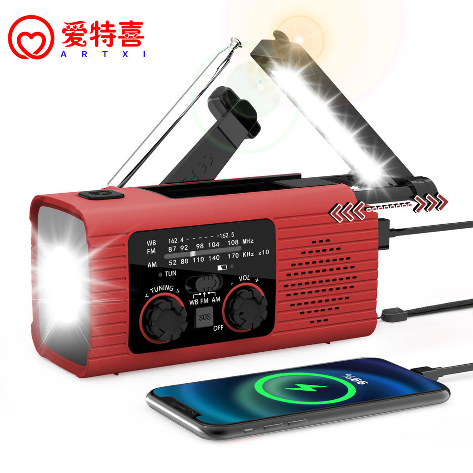 Nouveau Offre Spéciale batterie Rechargeable lampe de poche Led Radio Portable Am Fm Noaa auto-alimenté Dynamo d'urgence solaire manivelle Radio
