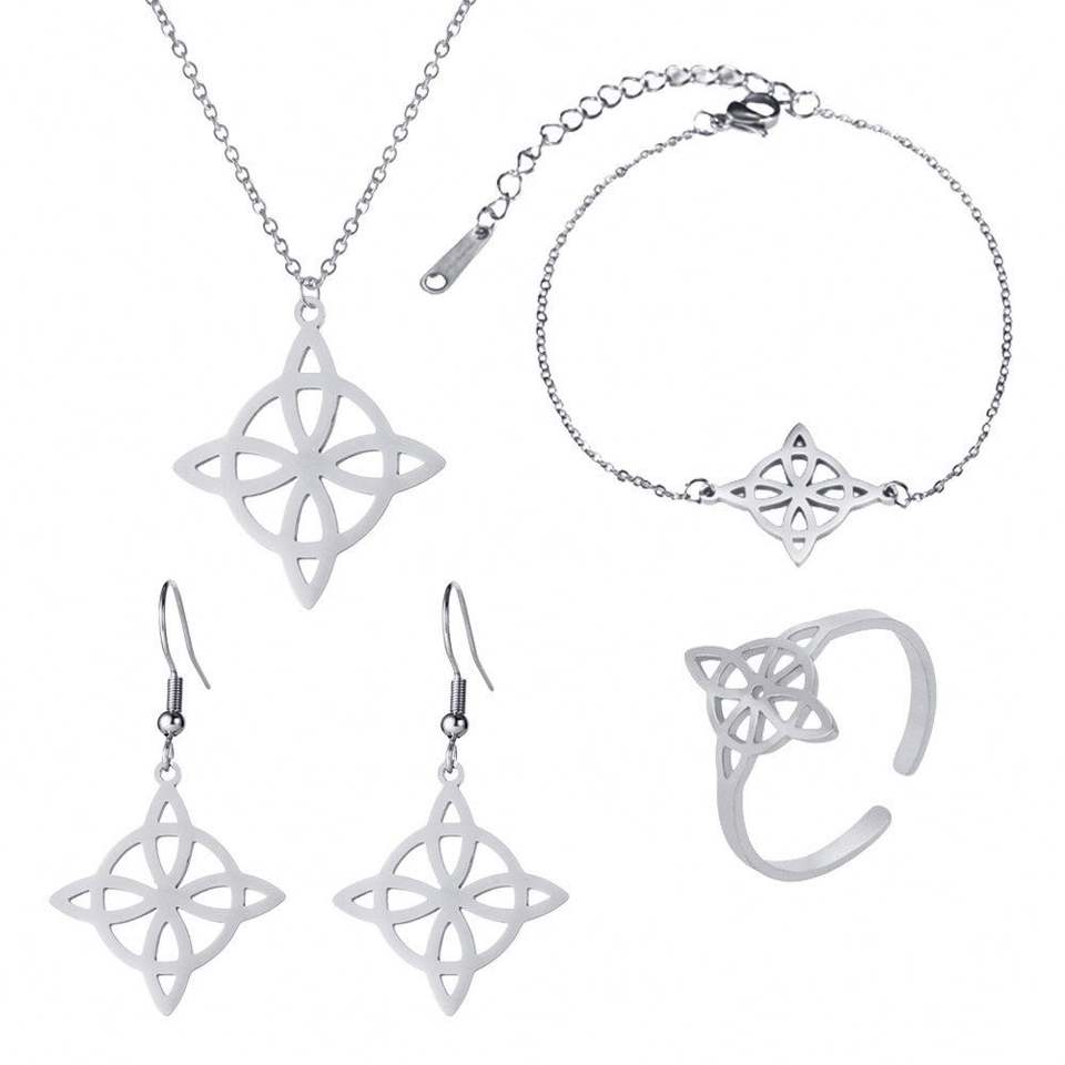 New Hot Sale Witch Knot S-shaped Fashion Necklace Bracelet Earring Ring Combination Cut Stainless Steel Set Decoration