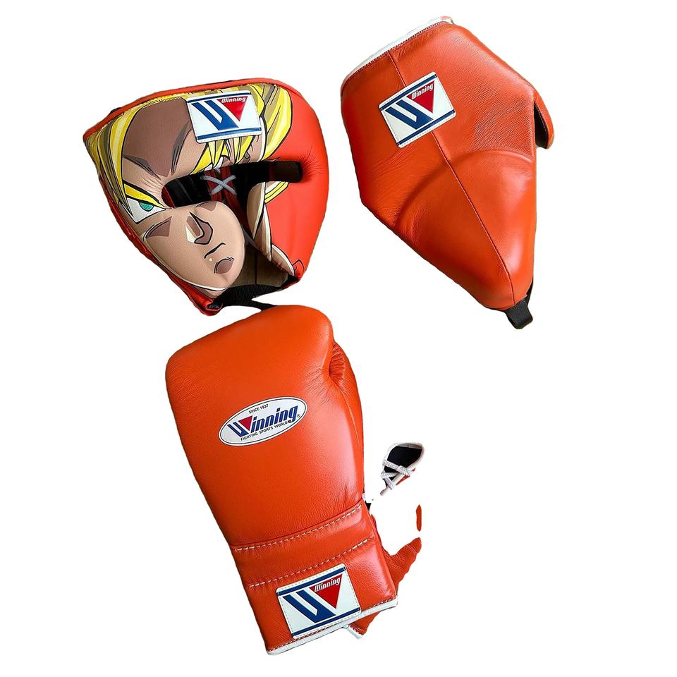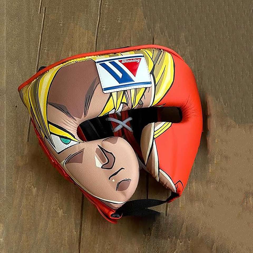 Nouvel ensemble de boxe très vendu, gants de boxe en cuir orange d'anime, protège-tête et protège-aine pour l'entraînement de Muay Thai