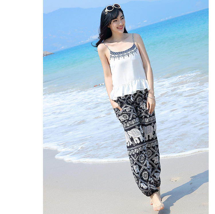 Nouveau best-seller Pantalons de plage longs printemps été Pantalons fins anti-moustiques à l'extérieur Pantalons imprimés éléphants pour femmes