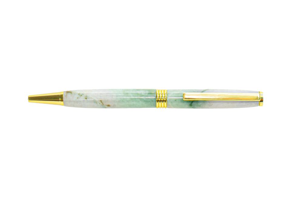 New Hot Trend 2025 beGems White Marble Veined Green Stone Ballpoint Pen Elegant Gemstone Pen