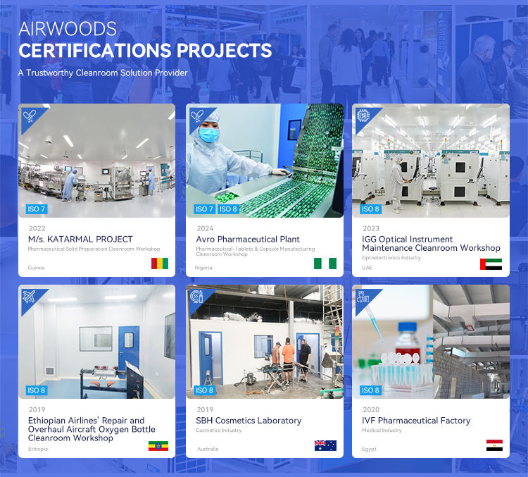 Nouvelle conception et construction de salle blanche ISO 3-8, solution de salles blanches personnalisées de qualité GMP pour les pharmacies et les hôpitaux avec filtres HEPA mobiles