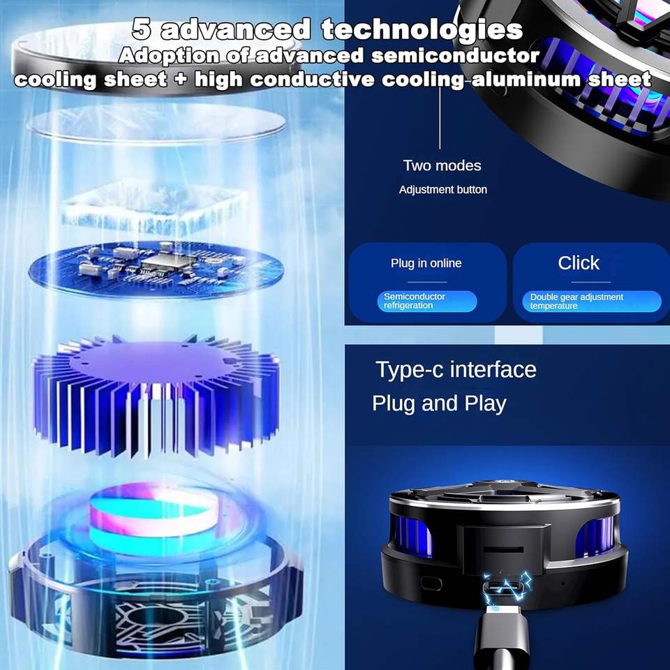 Nouveau refroidisseur de téléphone portable et de console de jeu à batterie magnétique à glace avec une seule vitesse de ventilation pour une utilisation en extérieur et des tablettes
