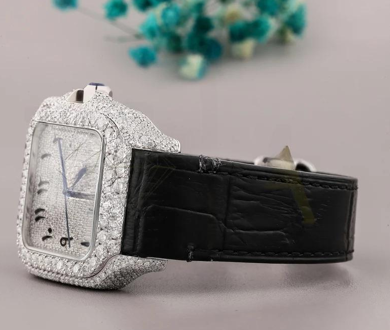 Nouveau testeur glacé passe VVS Moissanite diamant montre cadran arabe avec ceinture en cuir montre Moissanite de luxe de haute qualité pour hommes