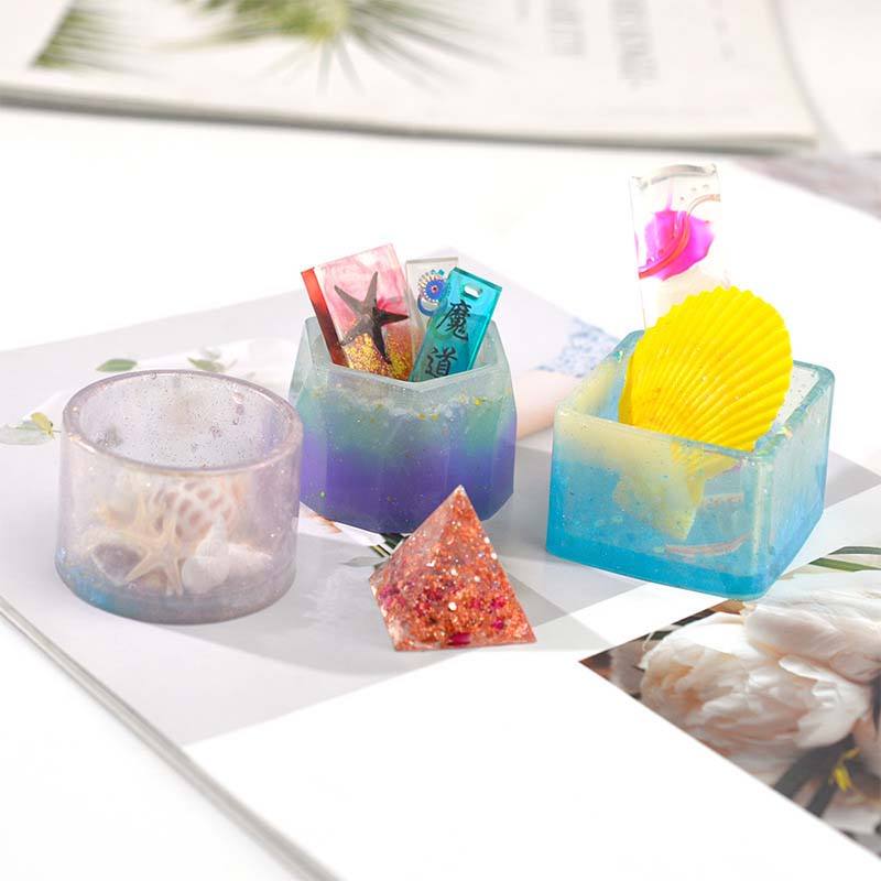 Boîte de rangement en résine et Silicone, Pot de fleurs, repas, hexagone rond ou carré pour bijoux, combinaison de moules, bricolage, nouveau design
