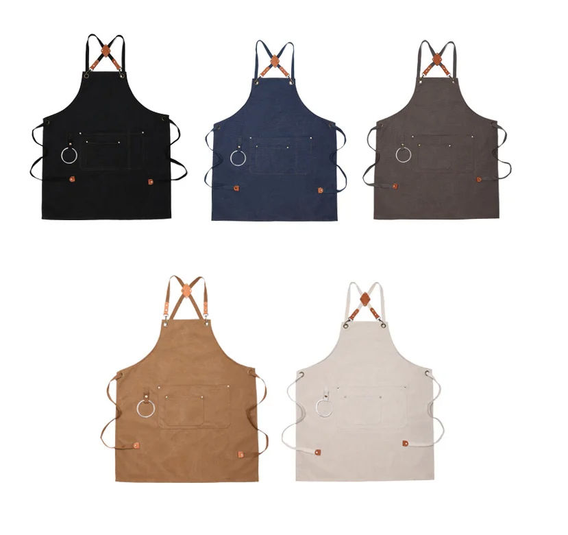 Nouveaux articles en stock taille adulte réglable 100% coton femmes hommes artiste Salon de coiffure Barista café boulangerie tablier de travail
