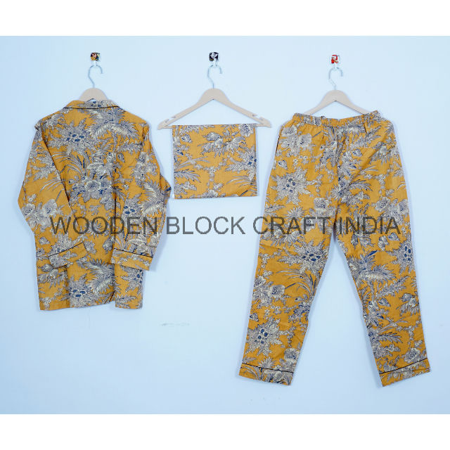 Nouveau Style bohème indien à la main imprimé fleuri femmes pyjama ensemble doux coton robe de nuit pour l'été printemps mariée saisons