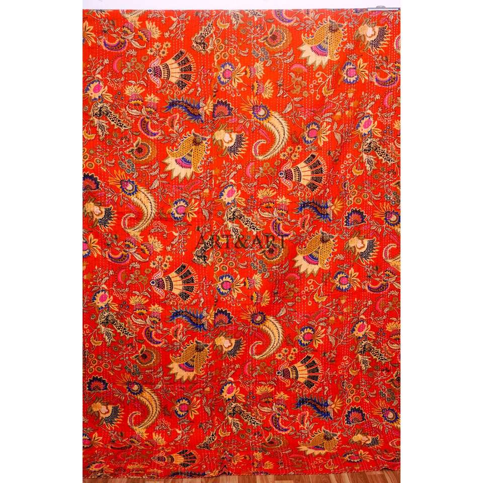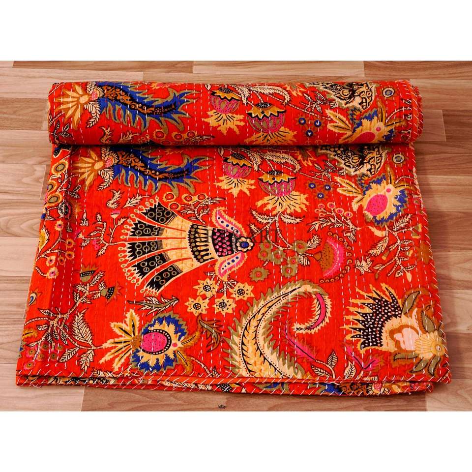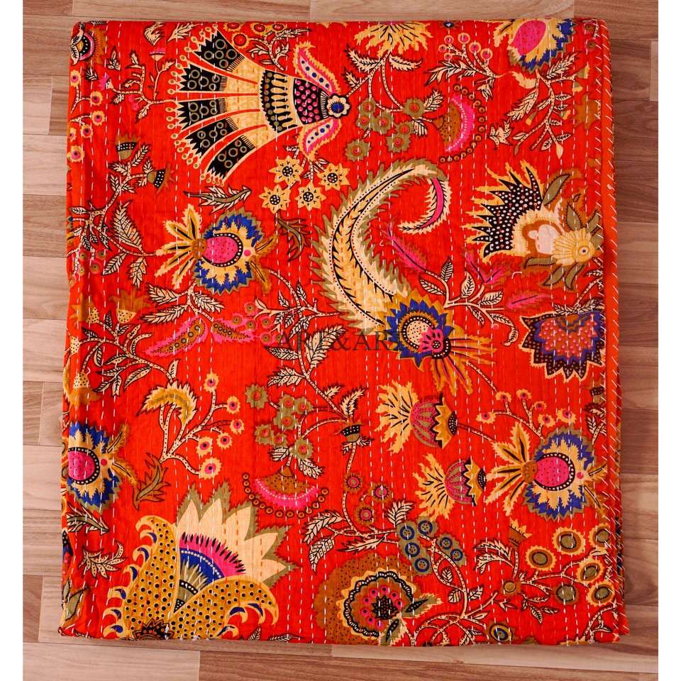 Nouvelle couette Kantha indienne imprimée à la main, confortable, de haute qualité, 100% coton, couvre-lit fait main, style bohème
