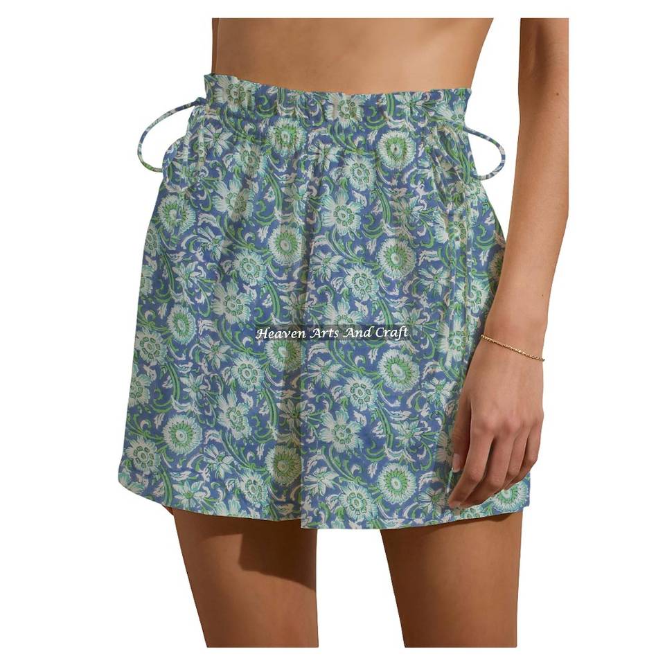 Nouveaux shorts de week-end pour femme en coton imprimé au bloc indien avec cordon de serrage, pour l'été et la détente
