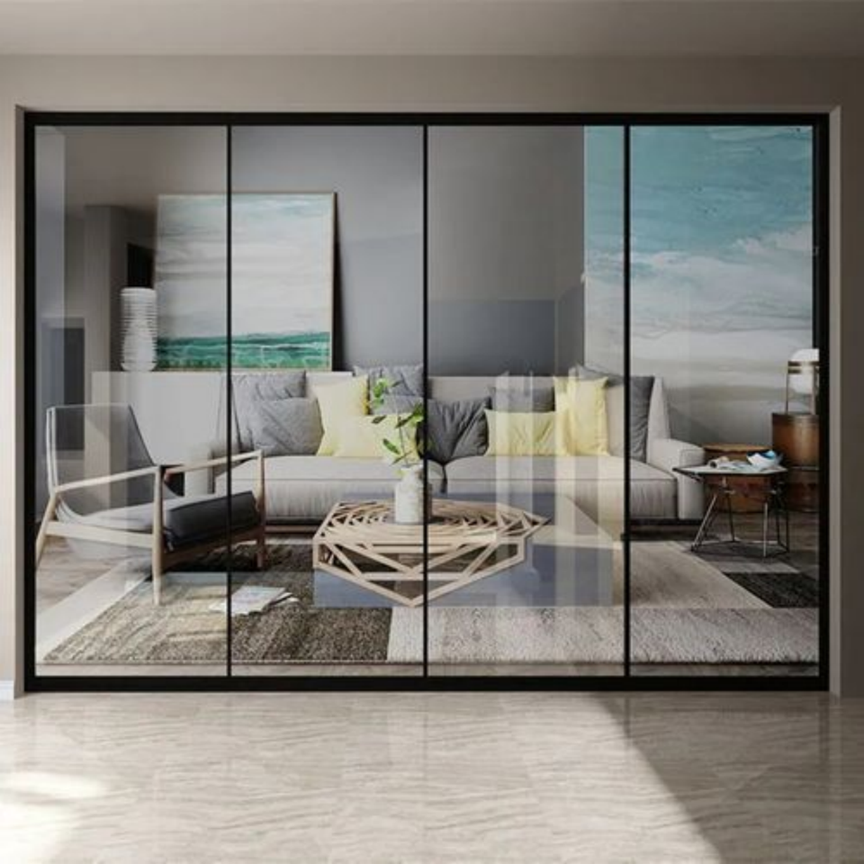 Nouvelle Tendance Industrielle Porte Coulissante en Verre et Aluminium Ultra Fine, Étanche, au Design Moderne sans Cadre pour Tous les Scénarios d'Utilisation