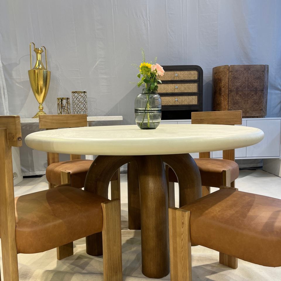 Cement Finish With Wood Frame TOP Fiber Glass Legs Dining Table