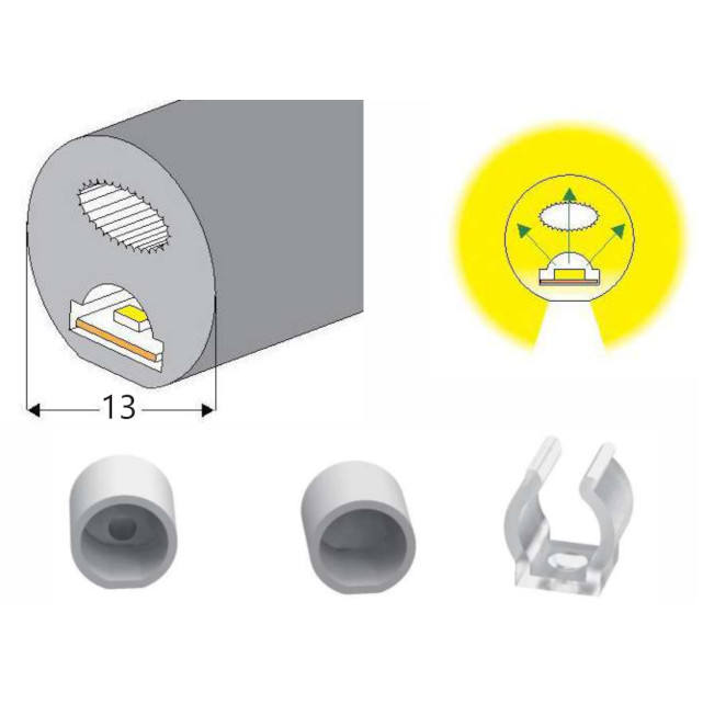Oasistek Nouvelle innovation Bande LED néon en silicone à vision verticale Diamètre 13 mm 270 degrés Couleur personnalisable Flux lumineux Auto Cad