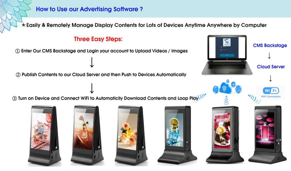 Nouvelle station de recharge publicitaire innovante brevetée CMS, contrôle à distance, support de menu pour restaurant, café, banque d'alimentation