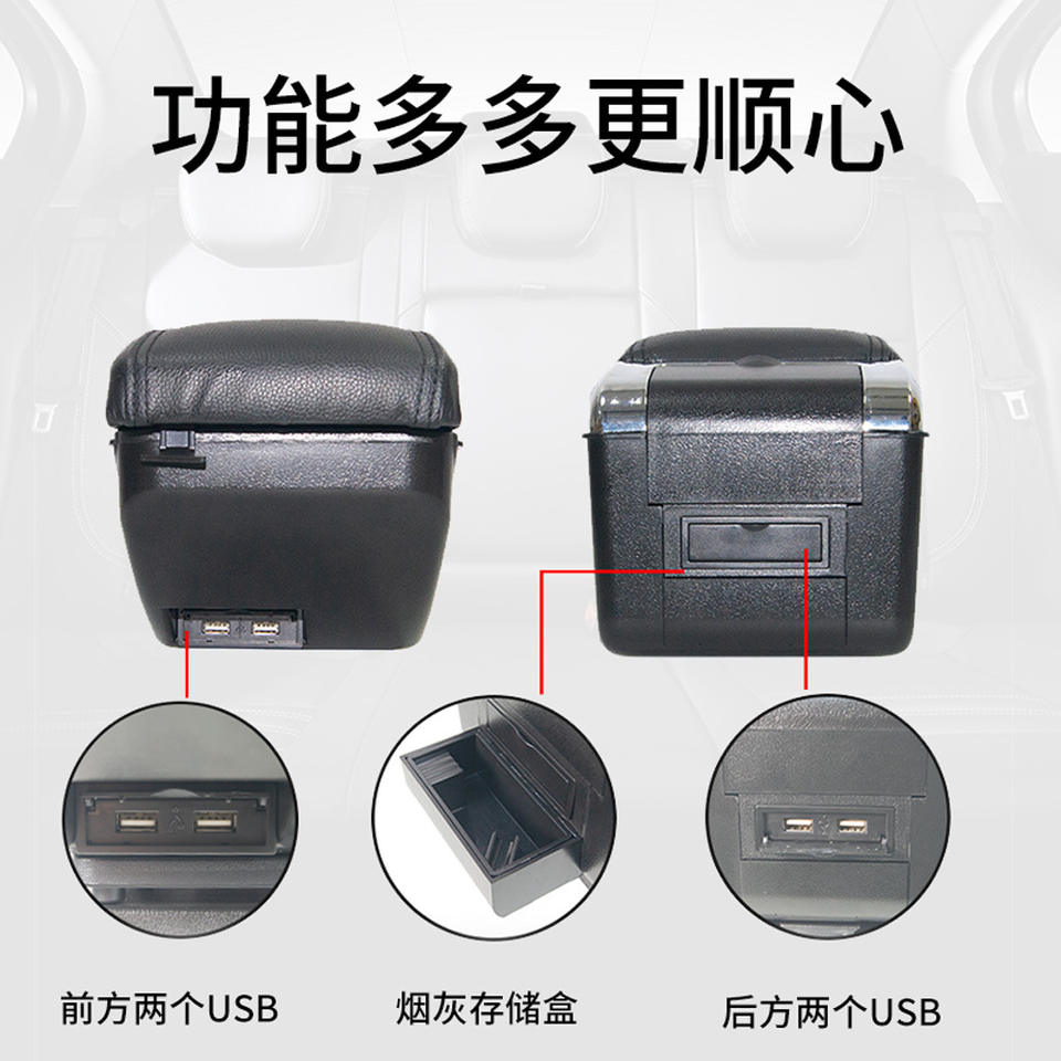 Nouvelle boîte d'accoudoir de voiture invisible avec port de charge USB, porte-gobelet, rangement - Design multifonctionnel en plastique, modèle AC-487