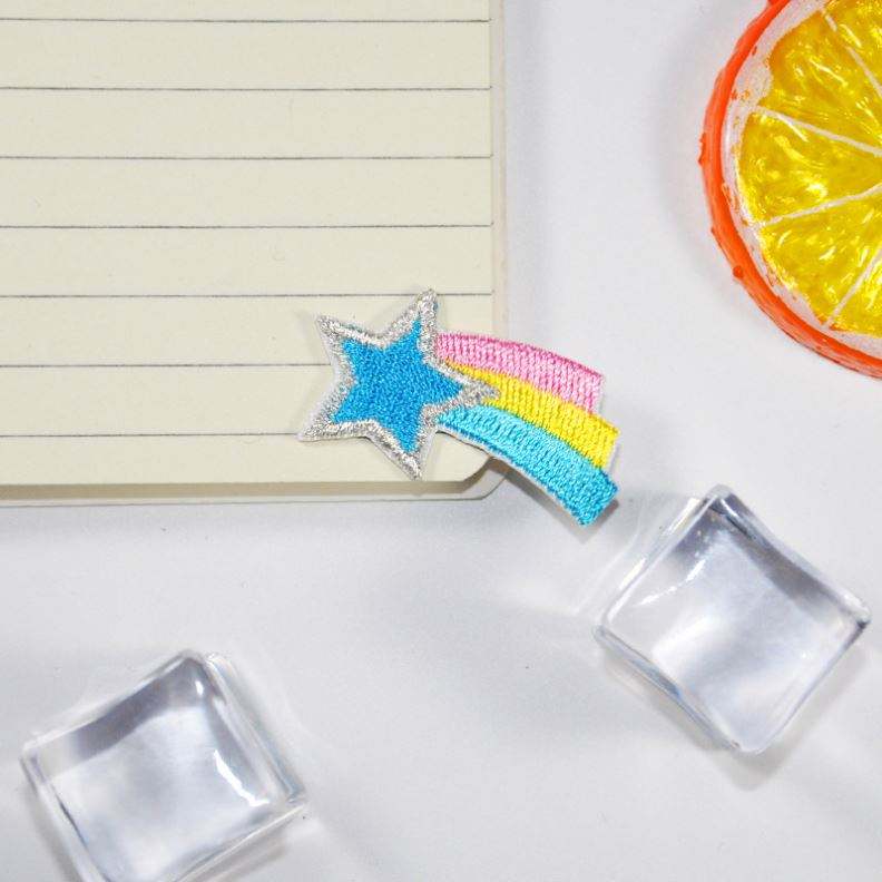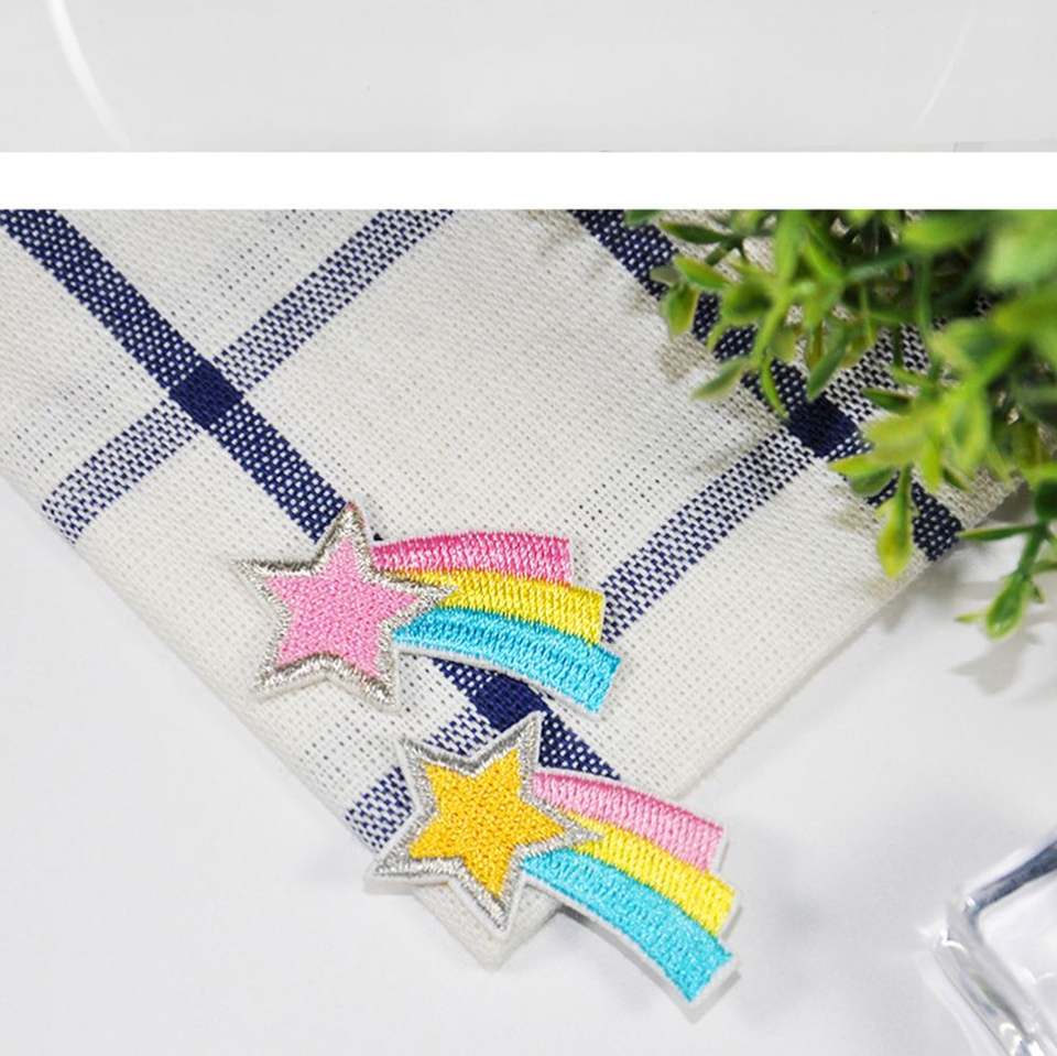 Nouvelle broderie thermocollante / autocollante, patch étoile filante mignon couleur macaron pour vêtements d'enfants et décoration de sacs