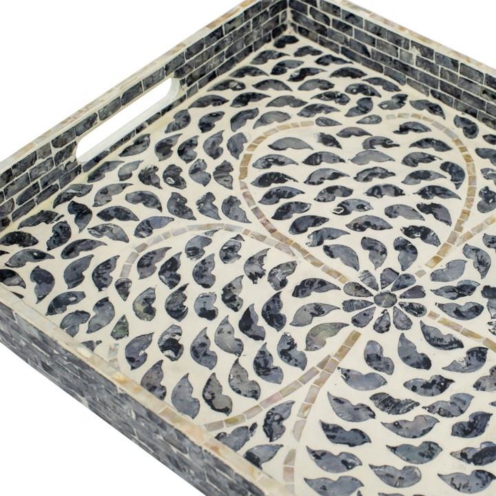 Plateaux de service en coquille de nacre avec poignée pour fruits plateaux de table basse faits à la main au vietnam