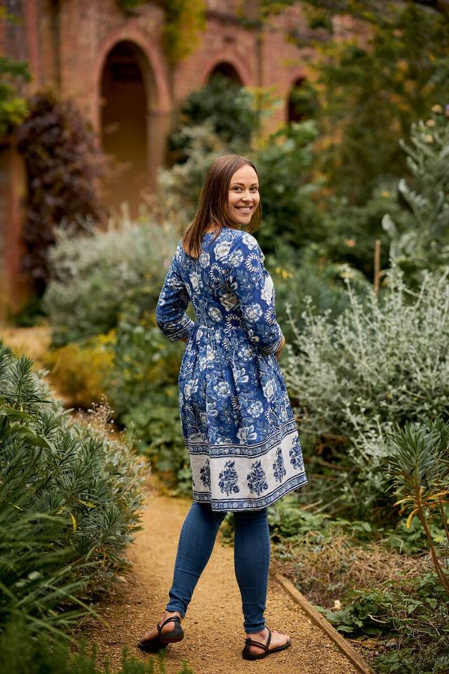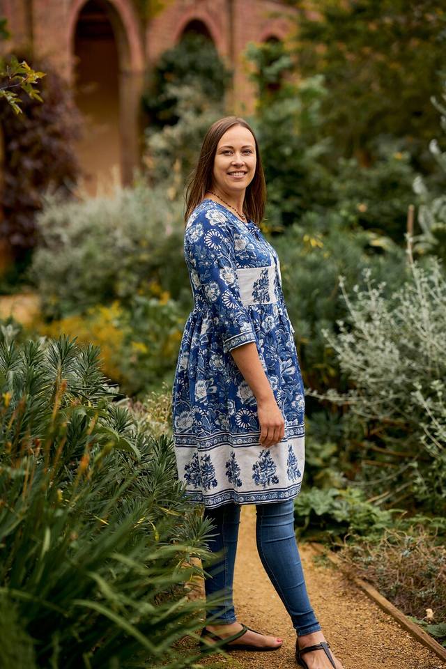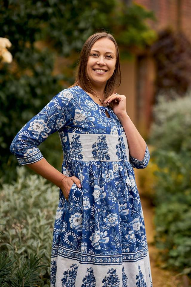 New Kanana Tunic Dress Pure Cotton Hand Block Printed Bohemian Casual Occasional Holiday Summer Blue White Handmade