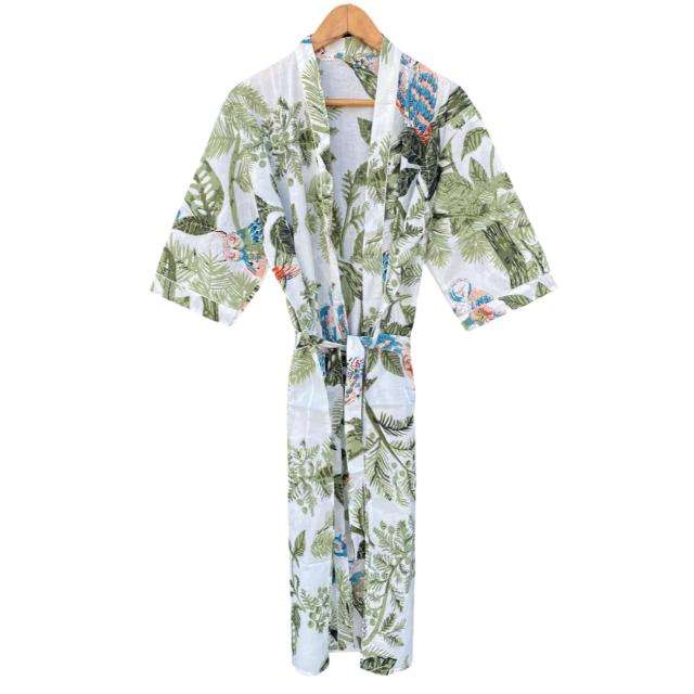 Nouvelle Robe Kimono en Coton Imprimé Floral Façonné à la Main, Respirante, à Manches Longues, pour Nuit et Plage, Prix de Gros