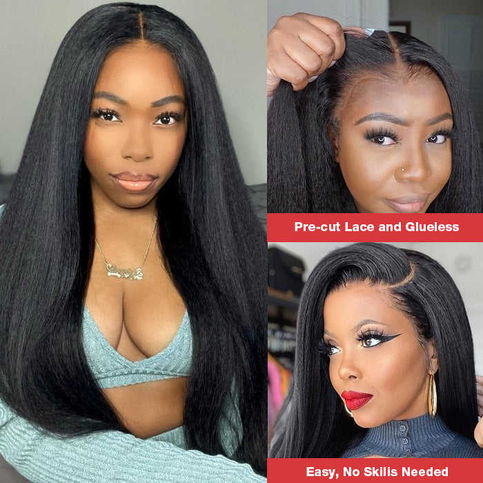 Nouvelle perruque en cheveux humains avec dentelle frontale HD transparente 13x4, style Kinky Straight avec cheveux de bébé afro bouclés, ligne de cheveux naturelle, bords bouclés, cheveux crépus