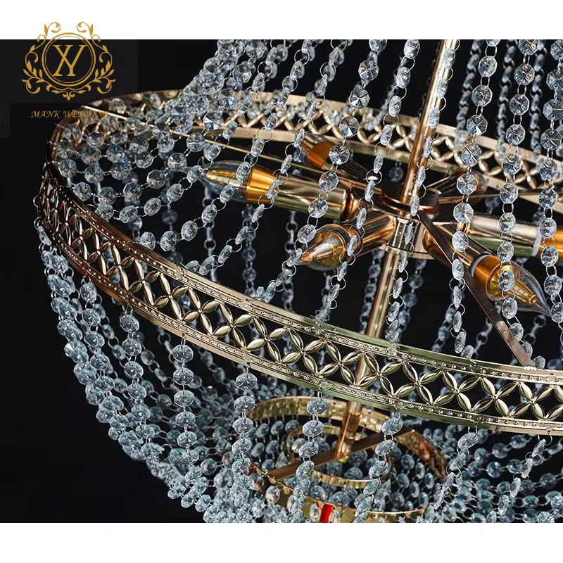 Nouvelle source de lumière LED fer métal placage cristal perle rideau lustre verre matériel mariage événement scène plafond décoration