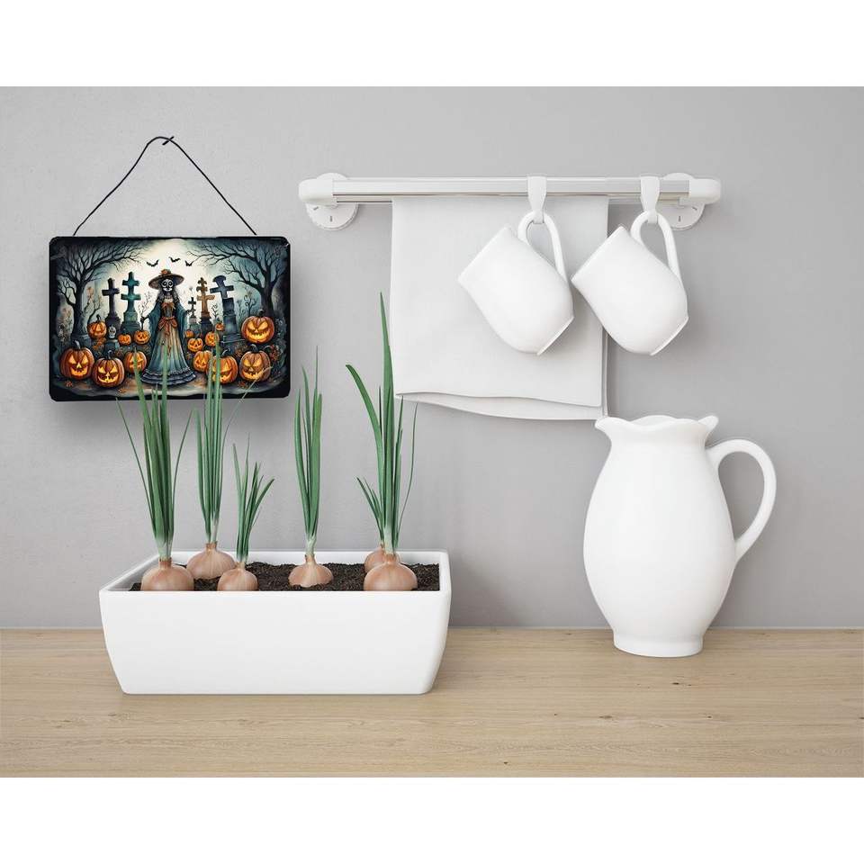 New La Catrina Skeleton Halloween Wall Hanging Spooky Aluminum Metal Sign for Kitchen Bar Bathroom Home Decor 8HX12W Multicolor