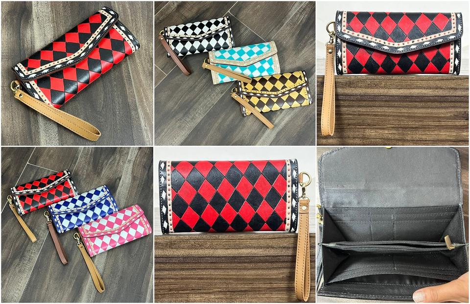 Nom du produit:Portefeuille bracelet en cuir à carreaux travaillé à la main