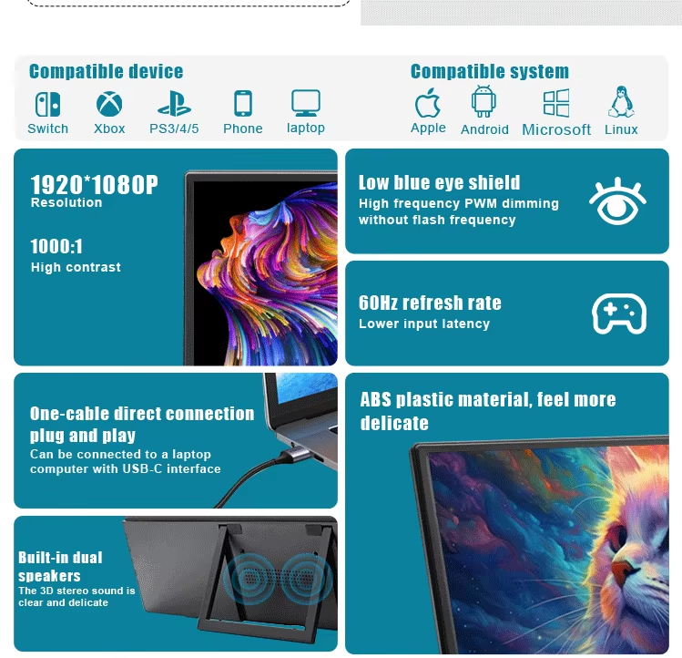 Nouvel écran d'extension pour ordinateur portable 14 pouces, moniteur portable double, deuxième écran, moniteurs portables de voyage pour ordinateur portable