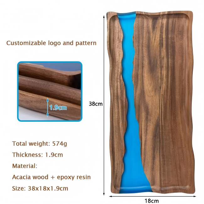 Nouveau grand plateau de rangement décoratif multifonctionnel en bois d'acacia et résine époxy pour charcuterie et fromages personnalisés