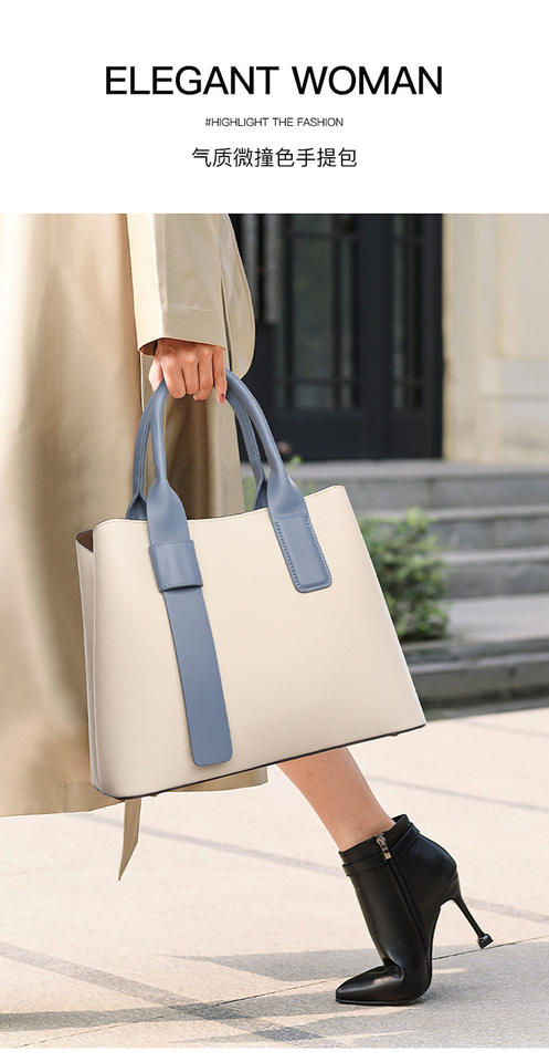 Nouveau Sac à Bandoulière Grande Capacité pour Femme, Style Simple et Tendance, Texture Unique, Sac Mère Bicolore