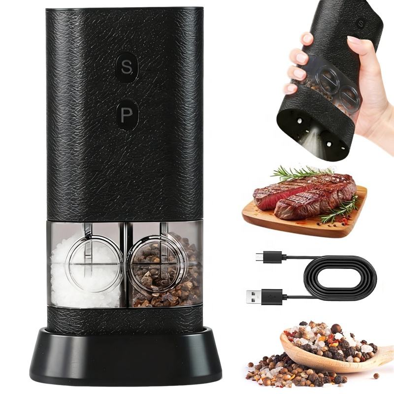 Nouveau moulin à épices automatique rechargeable à une main, grande capacité, broie deux épices, moulin à poivre et à sel électrique à double chambre rechargeable