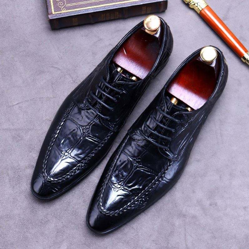 Nouvelles Chaussures Habillées Formelles pour Hommes à Bout Carré, Motif Patchwork, Respirantes, Antidérapantes, Légères, à Lacets, en Cuir de Vachette, Grande Taille