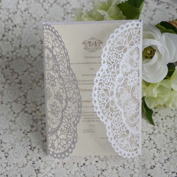 Carte d'invitation découpée au laser de mariage