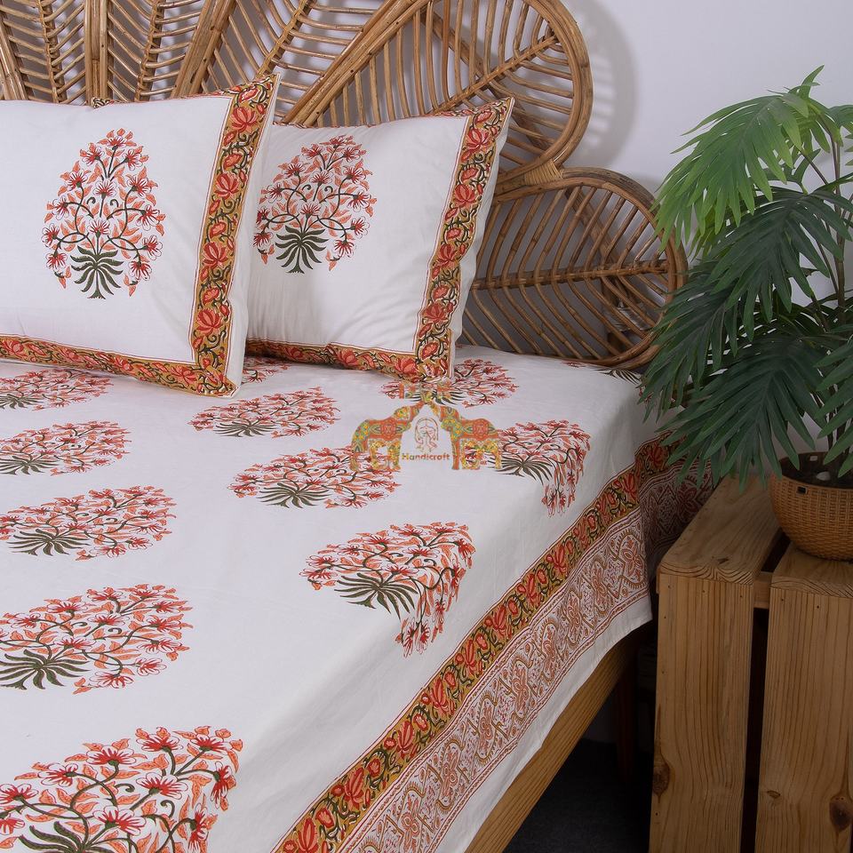 Nouvelle dernière arrivée de main bloc Floral imprimé coton drap de lit ensemble meilleur pour la maison décorative meilleur pour l'été léger