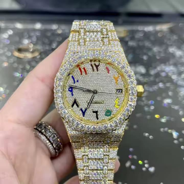 Nouvelle dernière montre Bling Lab diamant VVS Moissanite sur mesure cadran romain en argent montres de luxe pour hommes stock de montres à portée de main