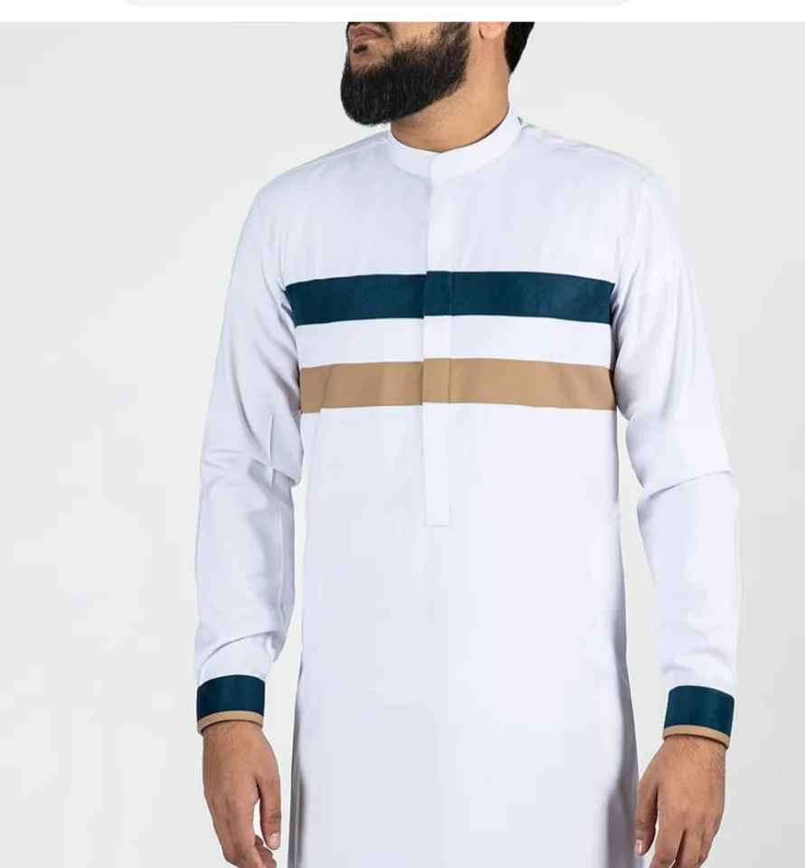 Nouveau Thobe de couleur bleue dernier design à bon prix et offrez également votre propre logo personnalisé à bas quantité minimale de commande 2025