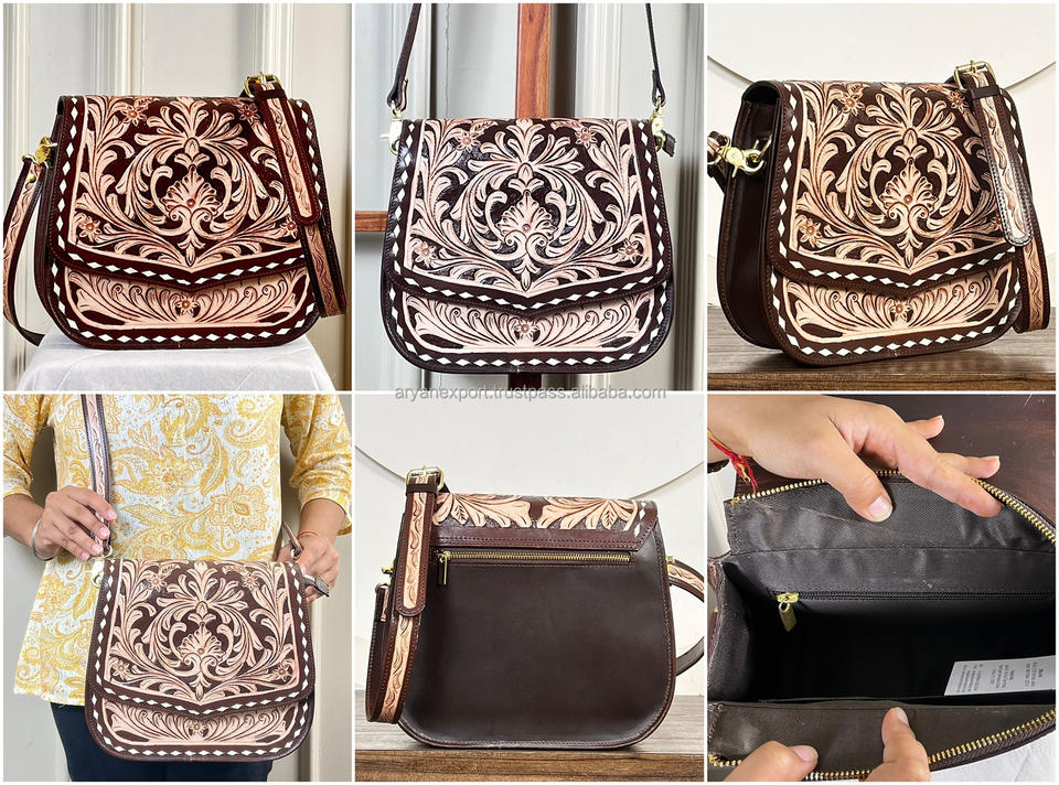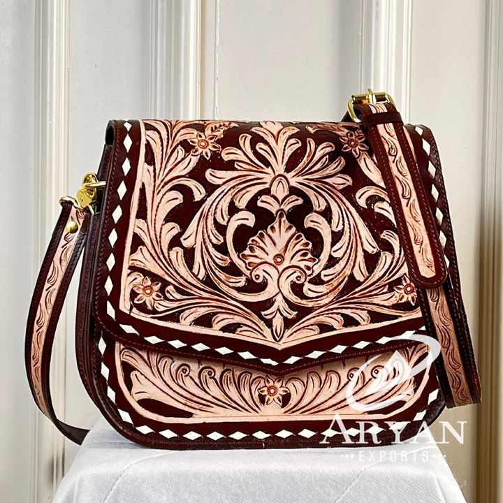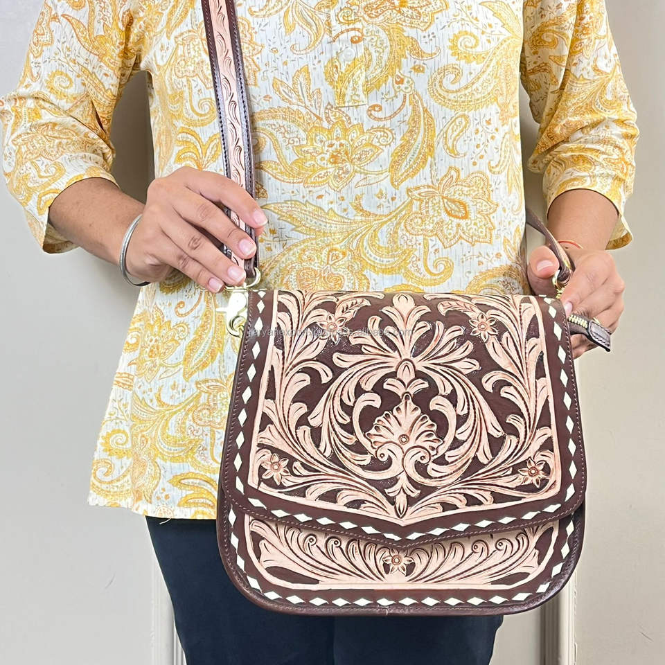 Hand Tooled Genuine Leather Crossbody Bag