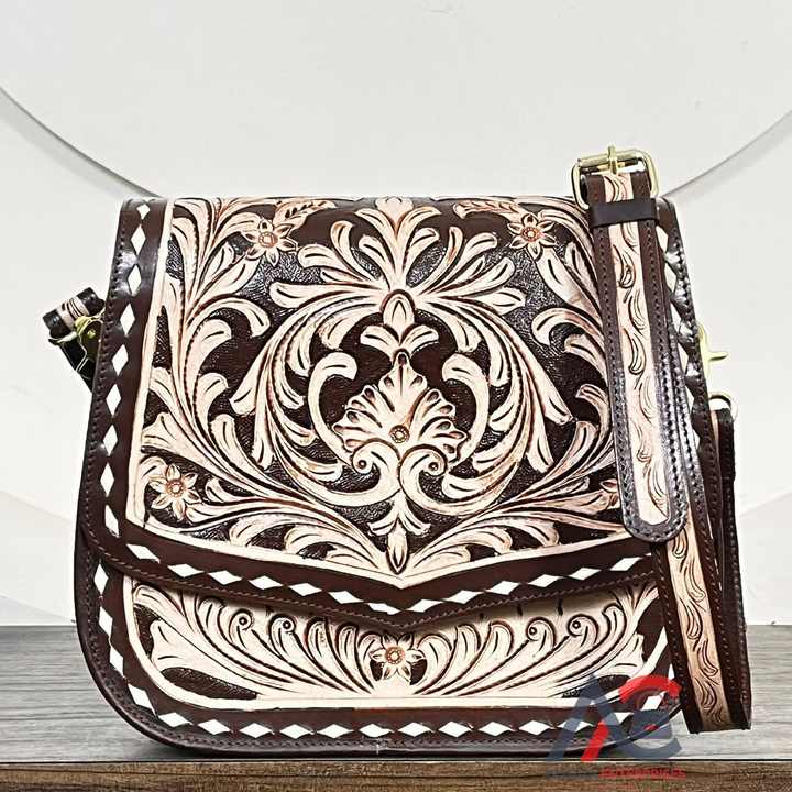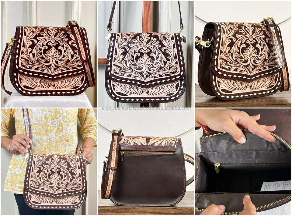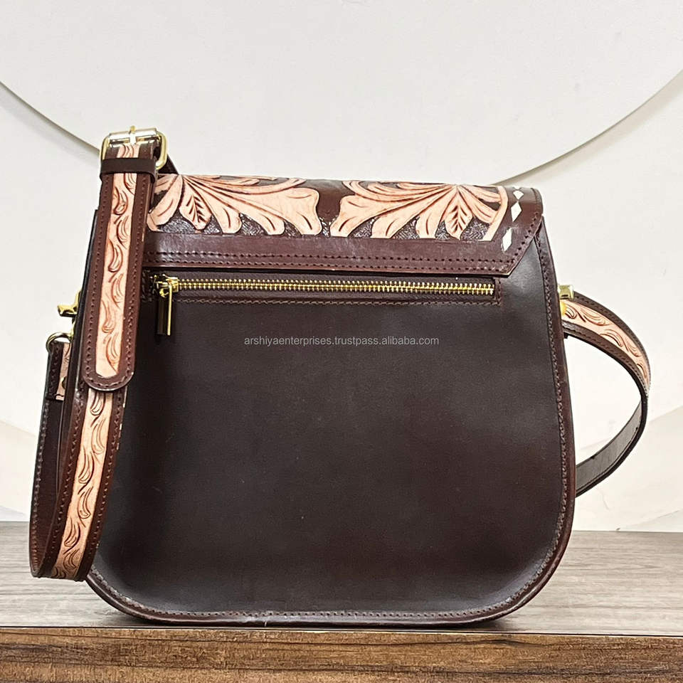 Nouveau sac bandoulière en cuir de vache véritable fait main avec motif floral, style bohème, sac à main avec bandoulière réglable pour femmes