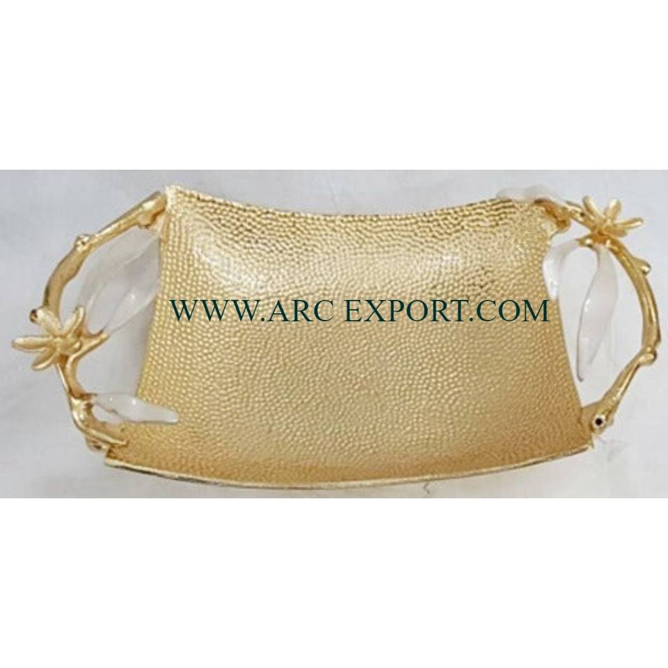 Nouveau dernier modèle plateau forme bol fantaisie Design moderne en aluminium plateau et plateaux de service avec poignées de fleurs design ustensiles de cuisine