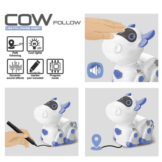 Nouvelle machine à dessiner au trait animal musique pour enfants modèle animal mécanique vache électrique suivre robot