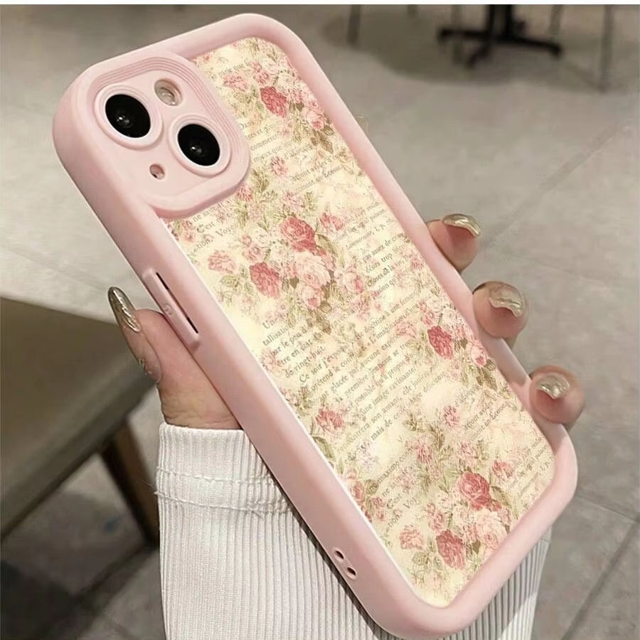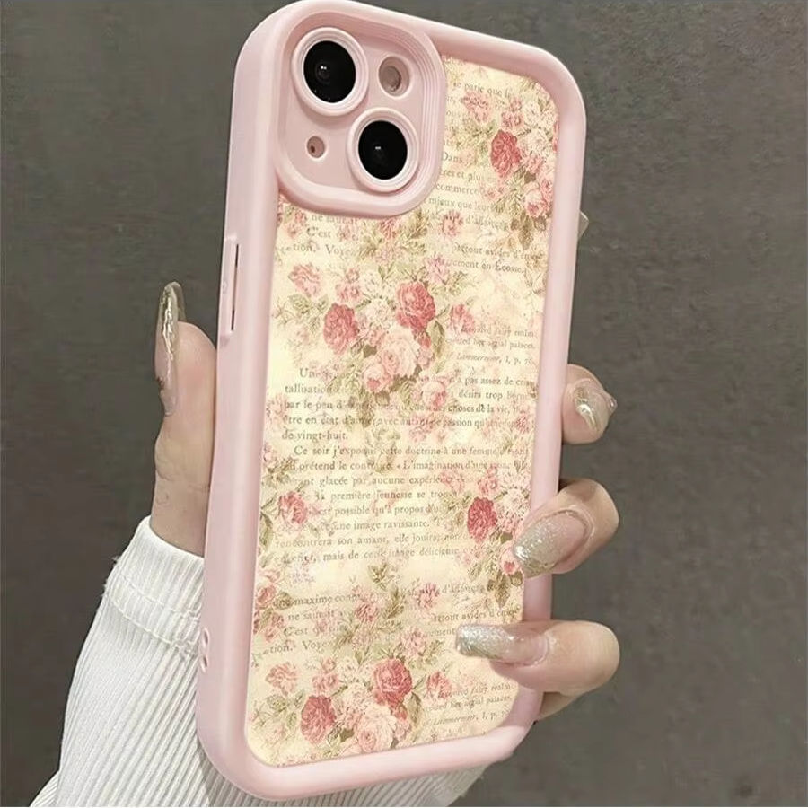 Nouvelle coque de téléphone motif carnet jaunissant et roses roses pour iPhone 17 16 15 Pro Max, finition mate dépolie à pores fins
