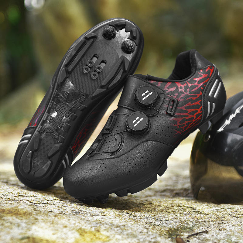Nouvelles chaussures de vélo à double boucle verrouillable pour hommes et femmes - Chaussures de vélo de route à semelle rigide pour VTT avec semelles en caoutchouc