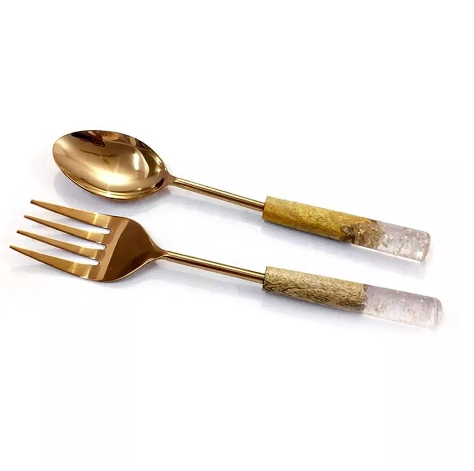Ensemble de couverts en métal inoxydable plaqué or New Look Salad Server avec poignée en résine Couverts élégants
