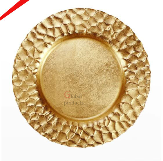 Plaque de chargeur en acier inoxydable en métal de forme ronde finition dorée New Look pour hôtel, restaurant et bar