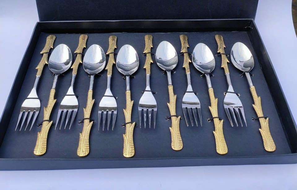 Ensemble de couverts à bord tourbillonnant fait à la main de haute qualité-Laiton en acier inoxydable pour le dessert comprend un cadeau promotionnel
