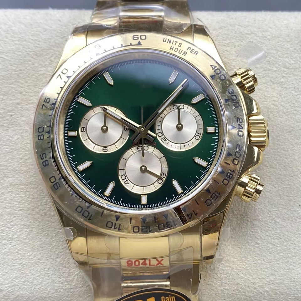 New Luxury 40mm Mechanical Watch Super Quality QF Factory 904L Steel 4131 Movement Weight 180g 126508 Gold Green Chrono Watch